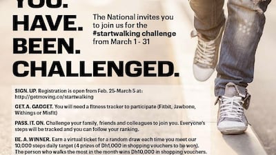 The competition, hosted by Get Fit Arabia, offers a prize of Dh10,000 in shopping vouchers for whoever takes the most steps next month.