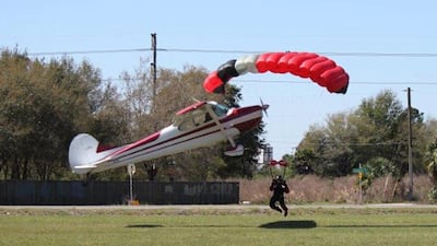 This remarkable sequence of photographs shows the moments just before and after a small plane collided with a descending parachutist at South Lakeland Airport in Mulberry, Florida.
