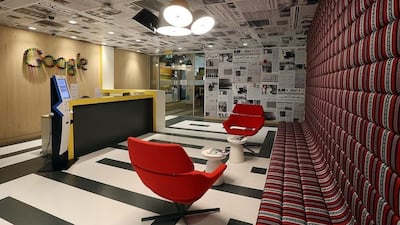 Rather than being glued to a screen, as you might expect at a tech company, most of the Googlers I see as I walk around the office are engaged in group video conferences. These Dubai staffers mostly resemble young students, dressed as they are in jeans and trainers, according to Google’s flexible dress code and starting time policy.