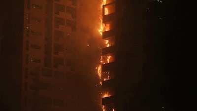 A large fire engulfed a residential tower near the Ajman Corniche on Monday night. Civil Defence teams from Sharjah and Ajman responded to the incident in the Sowan area at about 9pm.