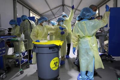 Mr Al Ayedi’s tents will not be filled with music, banquets or charity workers this year. Instead of soft lanterns glowing, fluorescent bulbs light tents filled with doctors and nurses.