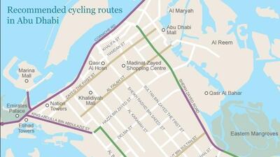 Recommended cycling routes in Abu Dhabi - graphic