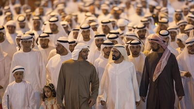 ABU DHABI // They marched in their thousands – Royals and notables, soldiers and civilians – drawn to the majestic fort-palace as were their elders decades ago.
