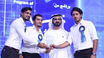 Sheikh Mohammed bin Rashid, Vice President and Ruler of Dubai, attended a ceremony for the competition, honouring 50 young Emirati scientists who won the contest. Photos: Wam