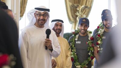 Sheikh Mohammed, Crown Prince of Abu Dhabi and Deputy Supreme Commander of the Armed Forces, expressed his pride in the team while receiving them at the Sea Palace on Monday.