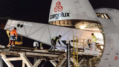 The cargo plane was expected to take off early on Tuesday morning to bring the Solar Impulse aircraft to the UAE, where it will remain for two months in preparation for take-off later this year.