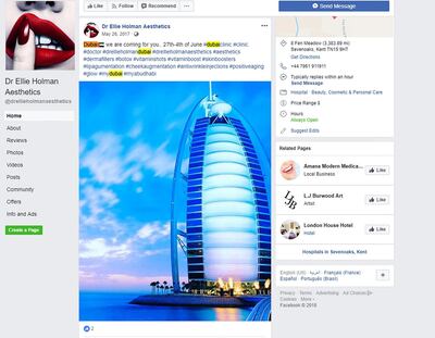 It has now emerged that Ms Holman advertised Botox injections along with other procedures while on visits to Dubai, according to her social media posts.