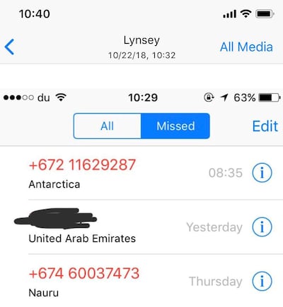 UAE residents reported receiving a series of calls from Antarctica, the tiny Pacific island of Nauru and Luxembourg in the past week.