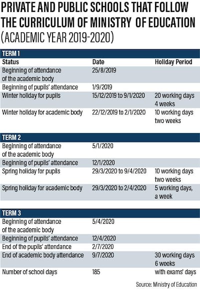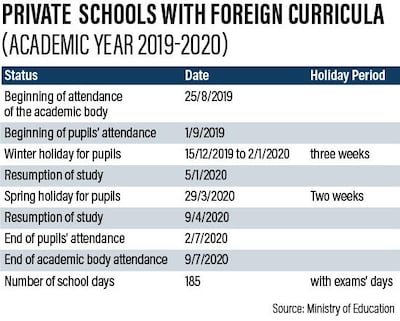 For private schools following foreign curriculums, the first day of school will fall on September 1, 2019, while teachers must return a week early on August 25.