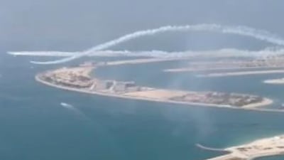 DUBAI // A helicopter pilot has captured images of acrobatic manoeuvres of the MB-339 PAN jets flying in formation from his 58th floor Dubai Marina apartment.