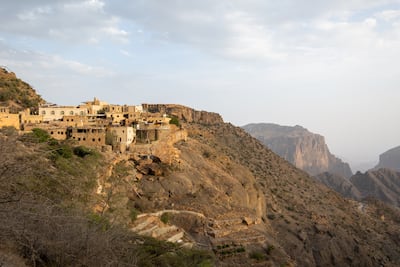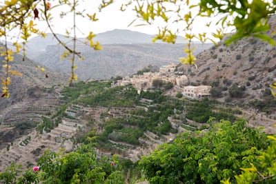Tourists park and walk through the ancient village of Al Aqer, pictured here with Alila Jabal Akhdar hotel behind it, to see the rose gardens. Many of the buildings in the village have been renovated and renewed in recent years, with some now converted as guesthouses, cafes and even a museum.