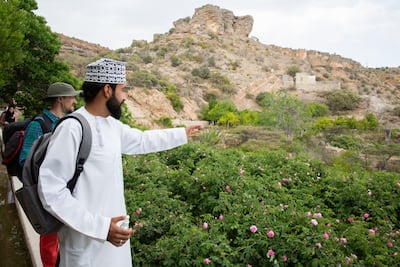 Suqri, who was born in Jebel Akhdar, works as a guide for Al Fawah Speciality Perfumes in his spare time. Cultural tourism is evident in the villages with perfume companies organising tours for tourists to help them understand how their products are made. The tours usually include hiking as well as picking roses, and a visit to the local distillation plant. Tour packages can range from five Omani riyals ($13) to 30 Omani riyals, depending on the type of tour.