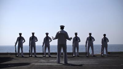 “Ladies and gentlemen, welcome to the Big Stick!” crew members shout on arrival, referring to the 20-story tall aircraft carrier’s namesake, the US’s 26th president known for the saying: “Speak softly and carry a big stick.”