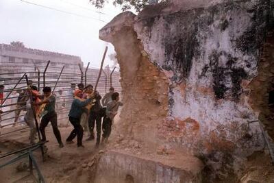 They demolished it with shovels, pickaxes and sticks, destroying it within five hours, and constructed a makeshift Hindu temple overnight.