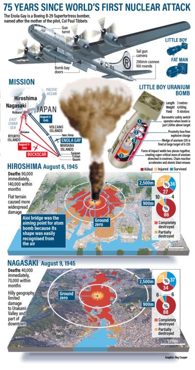 At 8.15am on August 6, 1945, U.S. B-29 warplane Enola Gay dropped a bomb nicknamed "Little Boy" and obliterated the city with an estimated population of 350,000, where thousands more died later from injuries and radiation-related illnesses.