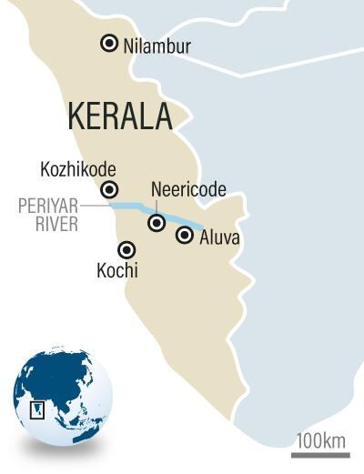 The 240-kilometre river, the longest in Kerala and an economic lifeline for the state, had swelled so much that it was nearly 7km wide.