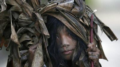 BIBICLAT, PHILIPPINES // At dawn on June 24, people from Bibiclat village in the northern Philippines’ Nueva Ecija province pay homage to their patron saint, John the Baptist, by gathering in silence in a swampy field to cover themselves in mud, donning mud-drenched capes made of dried banana leaves.