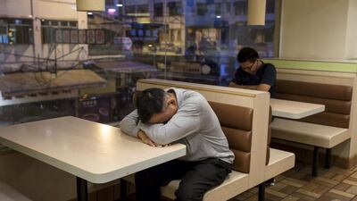 To the other diners at the McDonald’s in Hong Kong, the middle-aged woman slumped over her table was merely asleep.