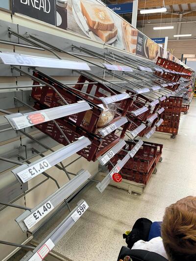 • Empty shelves inside a Sainsburys supermarket in Watford, southern England. Reuters