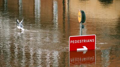 Floodwaters have already risen in parts of England, with a motorist pictured stranded in Leicester and workers in York preparing flood defences on Tuesday morning near the city’s River Ouse.