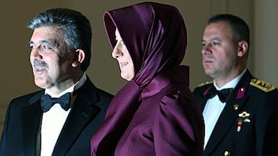 ISTANBUL // In a gesture that gives momentum to ending the ban on the hijab in Turkey's public sphere, the president's wife wore a headscarf to an official Republic Day banquet on Friday.