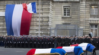 Crowds gathered to pay their last respects to those killed in last week’s terror attacks in Paris. Three police officers died in the killing spree when terrorists attacked the offices of satirical weekly magazine Charlie Hebdo and separately murdered a policewoman in the streets of Montrouge, outside the French capital.