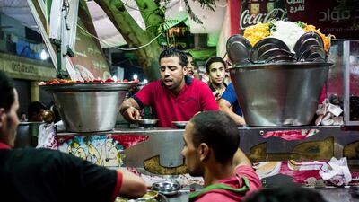 It’s 1.15am and Wimby, in the north Giza district of Imbaba, is buzzing with life. Egyptians are sitting down for suhoor, the predawn meal packed with calories to help them get through the next day’s fast. Wimby’s foul, felafel and fries are just the trick. A small plate of each is 4 Egyptian pounds (Dh1.88).