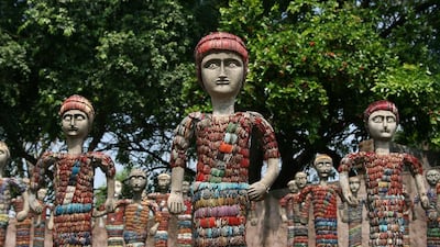 Chand began working on his craft in the 1960s, when he cleared out a small patch in the forest behind Chandigarh’s Sukhna Lake and started creating charming statues and figurines using everything from discarded rubber tires to colourful glass bangles.