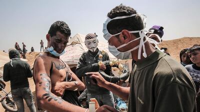Mona Al Shaar, 43, who was distributing bottles of vinegar to protesters east of Khan Yunis to dab onto tissues to help them cope with tear gas, said: "We came here for the land and for a better future."