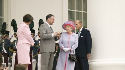The couple were received by the president at the time, George W Bush, and his wife Laura. The pair threw a state dinner at the White House in honour of the sovereign.