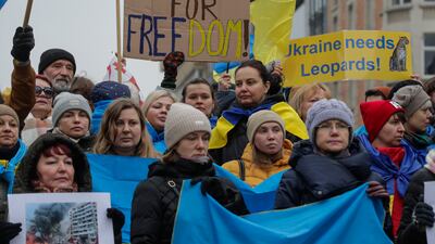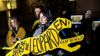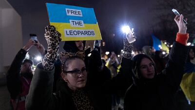 Ukrainians hold rallies calling for Leopard tanks - in pictures
