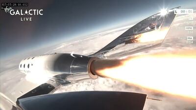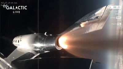 Virgin Galactic’s first commercial space tourism flight takes off – in pictures