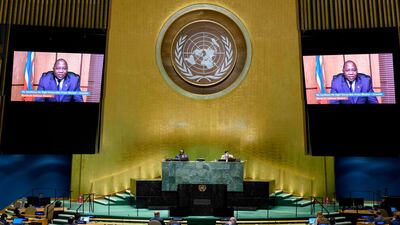 Others enhanced their presentations with subtitles or even cable-news-style chyrons, like “HOW WE CAN BUILD A BETTER FUTURE FOR ALL” and “WE MUST LEAVE NO ONE BEHIND” to underscore key messages from eSwatini’s prime minister, Ambrose Mandvulo Dlamini. Mr Duterte overlaid parts of his speech with relevant photos and videos of coronavirus test centres, storms and more, going well beyond the maps and pictures that leaders occasionally hold up at the assembly podium.