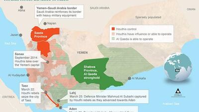 The Houthis launched their southern offensive on Tuesday, entering through Thale province, where top military commanders have long been allies of former president Saleh. The head of military brigade 33 in Dhale, Commander Mohammed Thaba’an, handed charge to the Houthis with little resistance. The rebels then took over the Laboza military base in Lahj province, located just 15 minutes from Al Annad airbase.